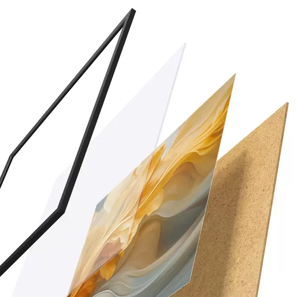 Постер складається з рами, оргскла, надрукованого зображення та підкладки з ДСП. Завдяки кріпленням на звороті плакат можна одразу ж повісити на стіну.