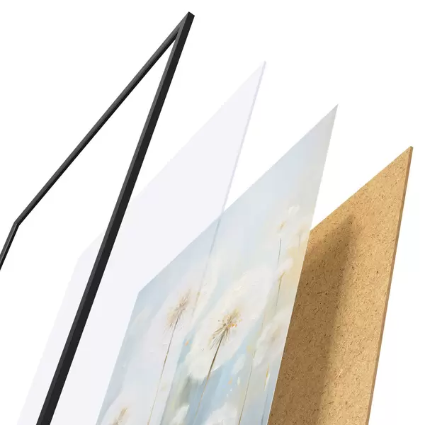 Постер складається з рами, оргскла, надрукованого зображення та підкладки з ДСП. Завдяки кріпленням на звороті плакат можна одразу ж повісити на стіну.
