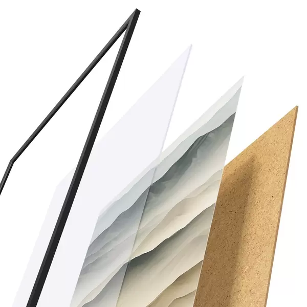 Постер складається з рами, оргскла, надрукованого зображення та підкладки з ДСП. Завдяки кріпленням на звороті плакат можна одразу ж повісити на стіну.