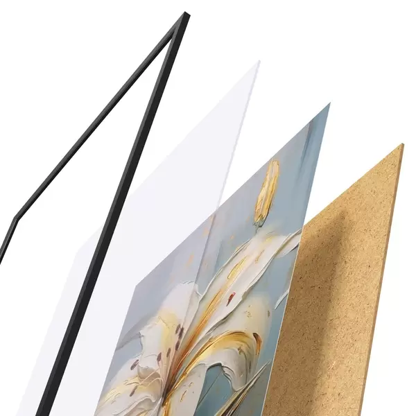 Постер складається з рами, оргскла, надрукованого зображення та підкладки з ДСП. Завдяки кріпленням на звороті плакат можна одразу ж повісити на стіну.