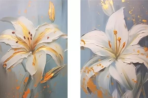 Постер на стіну Білі лілії з жовтими штрихами на блакитному тлі Nr d00497
