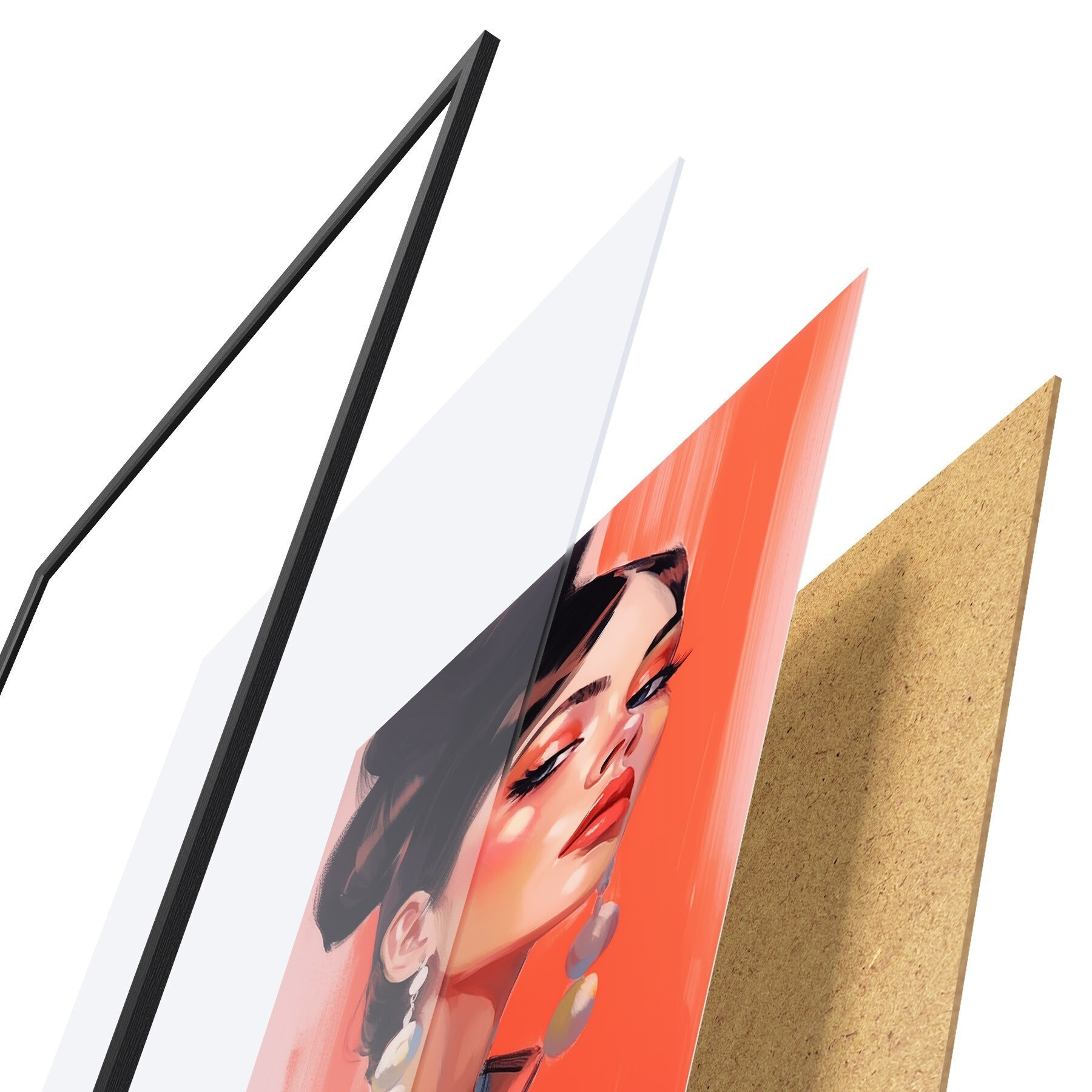 Постер складається з рами, оргскла, надрукованого зображення та підкладки з ДСП. Завдяки кріпленням на звороті плакат можна одразу ж повісити на стіну.