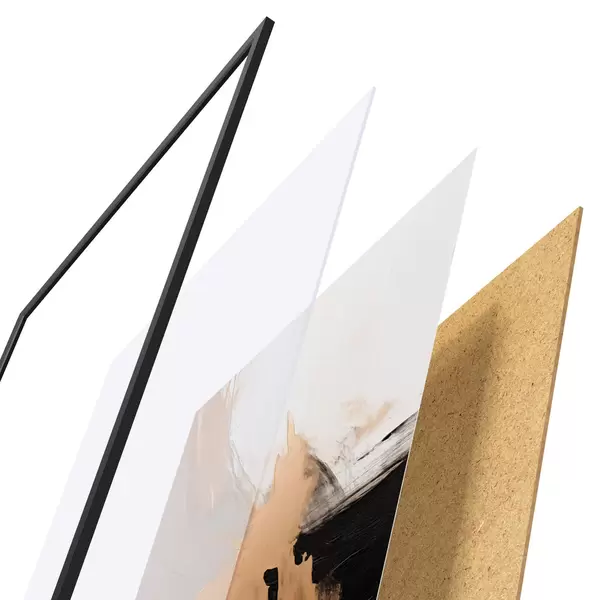 Постер складається з рами, оргскла, надрукованого зображення та підкладки з ДСП. Завдяки кріпленням на звороті плакат можна одразу ж повісити на стіну.