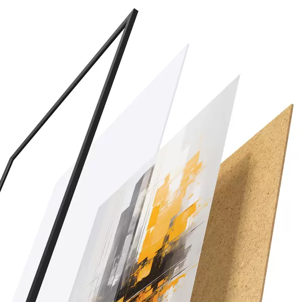 Постер складається з рами, оргскла, надрукованого зображення та підкладки з ДСП. Завдяки кріпленням на звороті плакат можна одразу ж повісити на стіну.