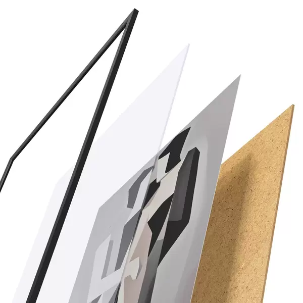 Постер складається з рами, оргскла, надрукованого зображення та підкладки з ДСП. Завдяки кріпленням на звороті плакат можна одразу ж повісити на стіну.