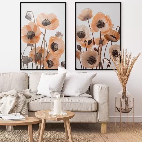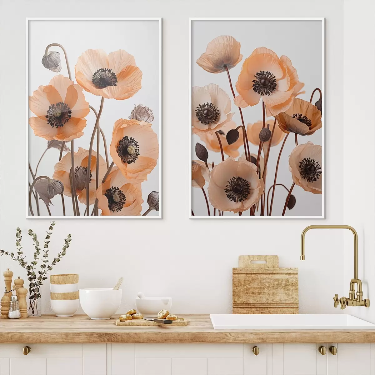 Постер на стіну Помаранчевий мак, сухі квіти на світлому тлі, м'яке освітлення, ніжні пелюстки, квіткова композиція Nr d00518