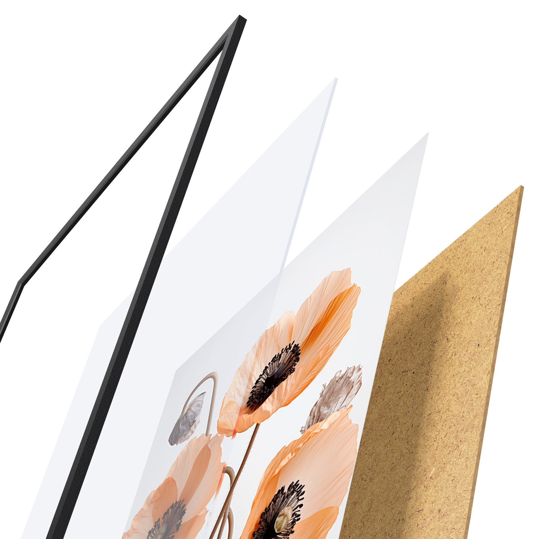 Постер складається з рами, оргскла, надрукованого зображення та підкладки з ДСП. Завдяки кріпленням на звороті плакат можна одразу ж повісити на стіну.