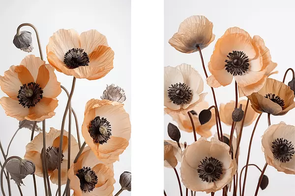 Постер на стіну Помаранчевий мак, сухі квіти на світлому тлі, м'яке освітлення, ніжні пелюстки, квіткова композиція Nr d00518