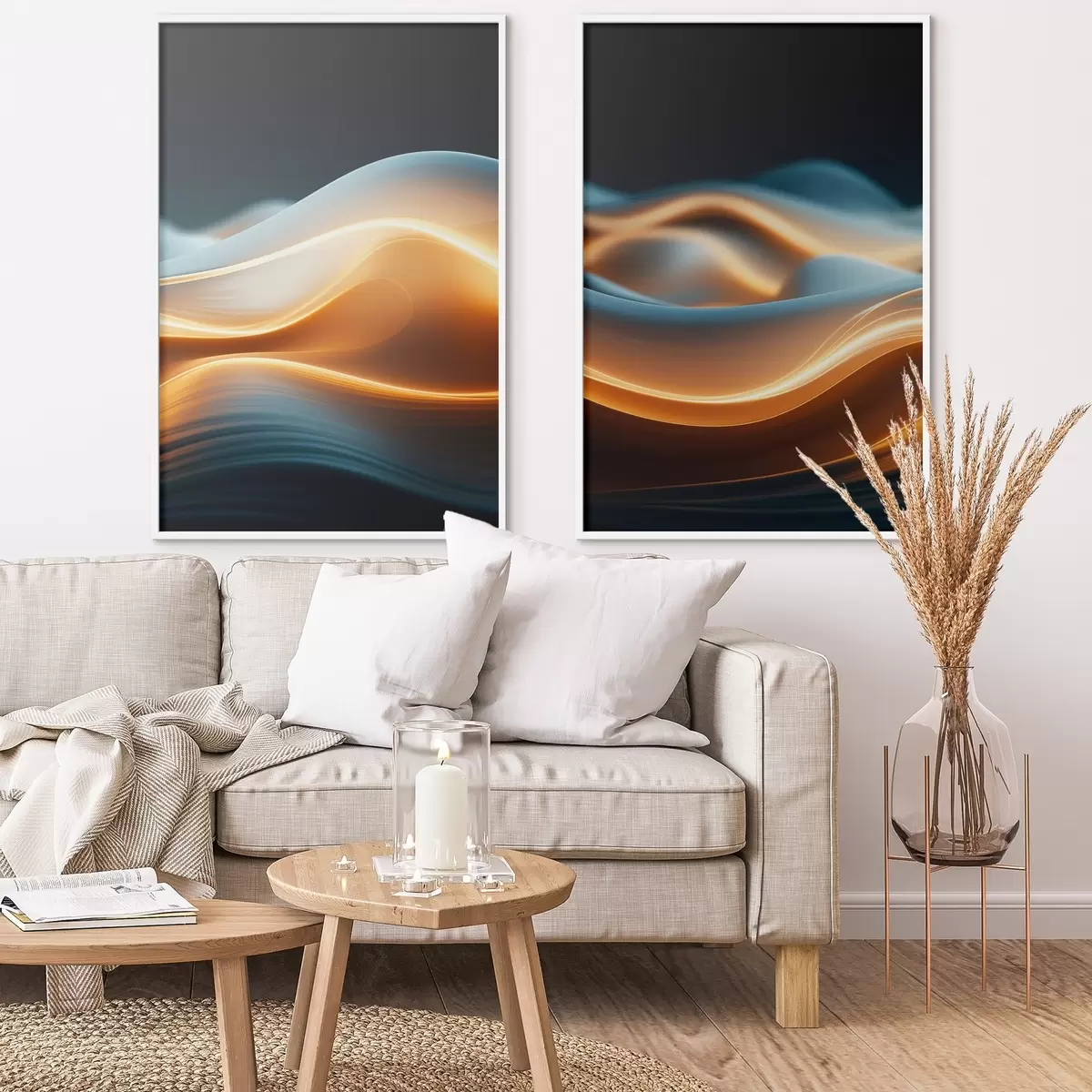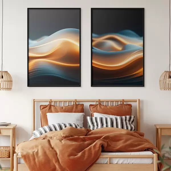 Постер на стіну Абстрактні плавні форми з помаранчевими лініями, плавні криві та лінії, динамічна композиція, темне тло Nr d00526