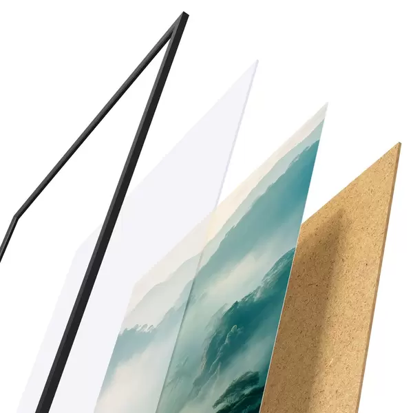 Постер складається з рами, оргскла, надрукованого зображення та підкладки з ДСП. Завдяки кріпленням на звороті плакат можна одразу ж повісити на стіну.