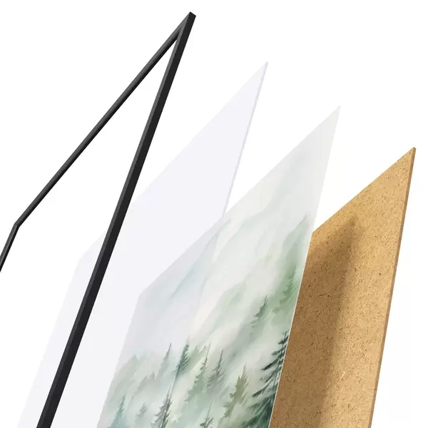 Постер складається з рами, оргскла, надрукованого зображення та підкладки з ДСП. Завдяки кріпленням на звороті плакат можна одразу ж повісити на стіну.