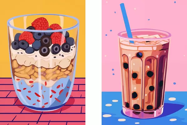Постер на стіну Бульбашковий чай і гранола з фруктами Nr d00545