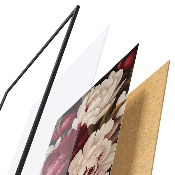 Постер складається з рами, оргскла, надрукованого зображення та підкладки з ДСП. Завдяки кріпленням на звороті плакат можна одразу ж повісити на стіну.