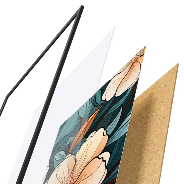 Постер складається з рами, оргскла, надрукованого зображення та підкладки з ДСП. Завдяки кріпленням на звороті плакат можна одразу ж повісити на стіну.