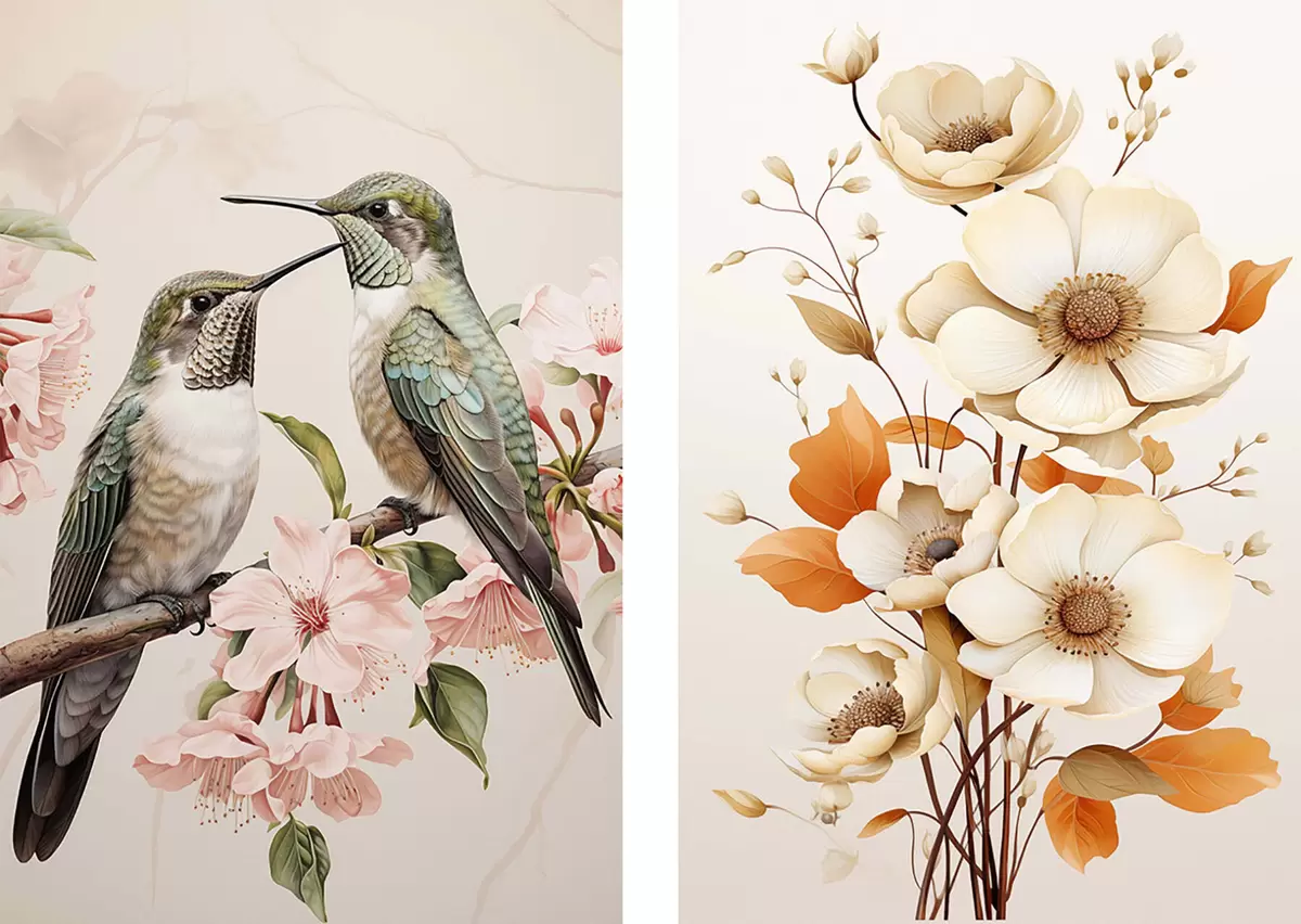 Постер на стіну Квіти та птахи на гілках Nr d00560
