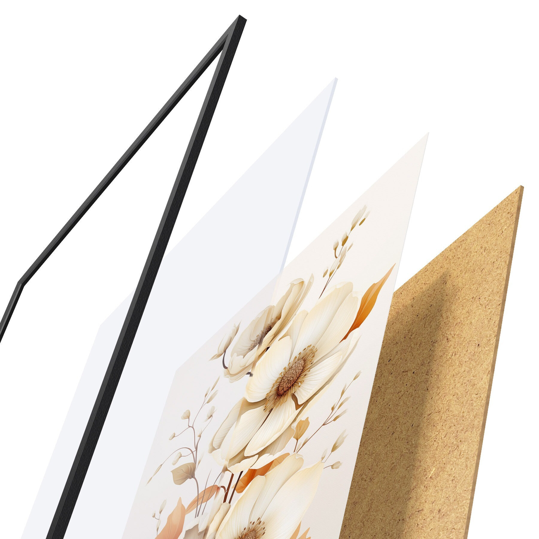 Постер складається з рами, оргскла, надрукованого зображення та підкладки з ДСП. Завдяки кріпленням на звороті плакат можна одразу ж повісити на стіну.