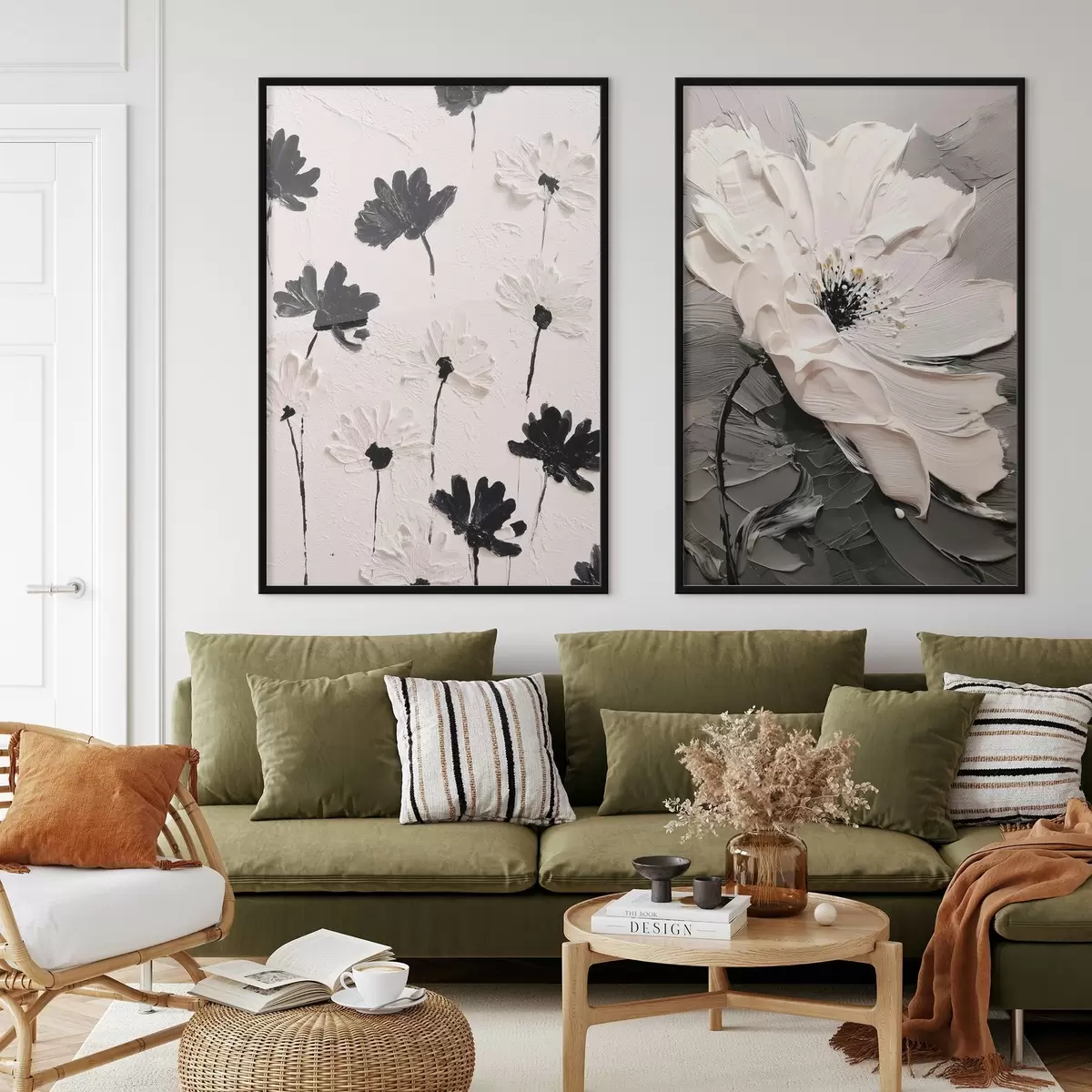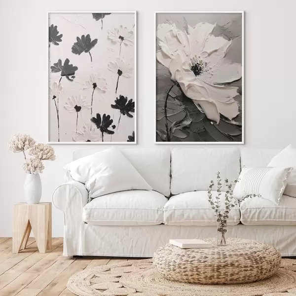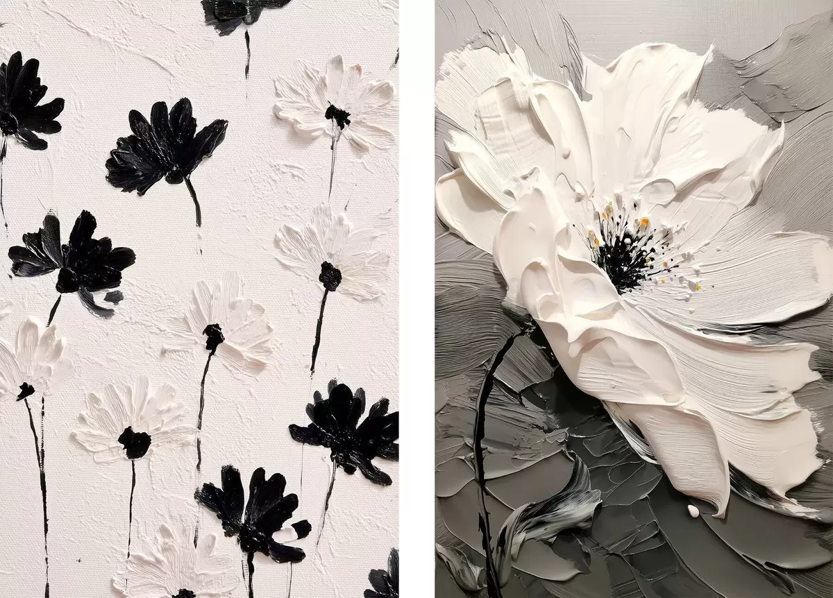 Постер на стіну Диптих з білими та чорними квітами в сучасному стилі Nr d00571