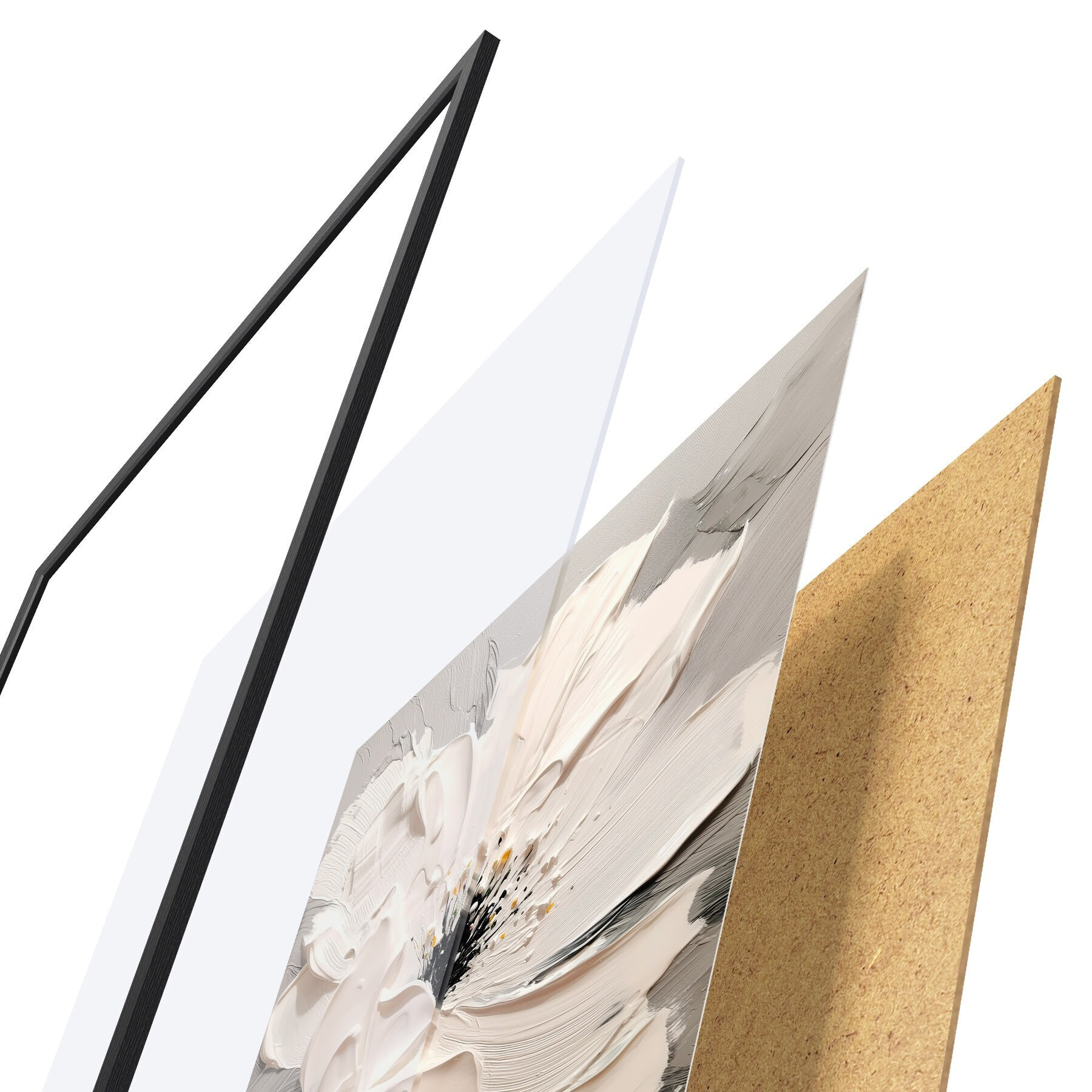 Постер складається з рами, оргскла, надрукованого зображення та підкладки з ДСП. Завдяки кріпленням на звороті плакат можна одразу ж повісити на стіну.