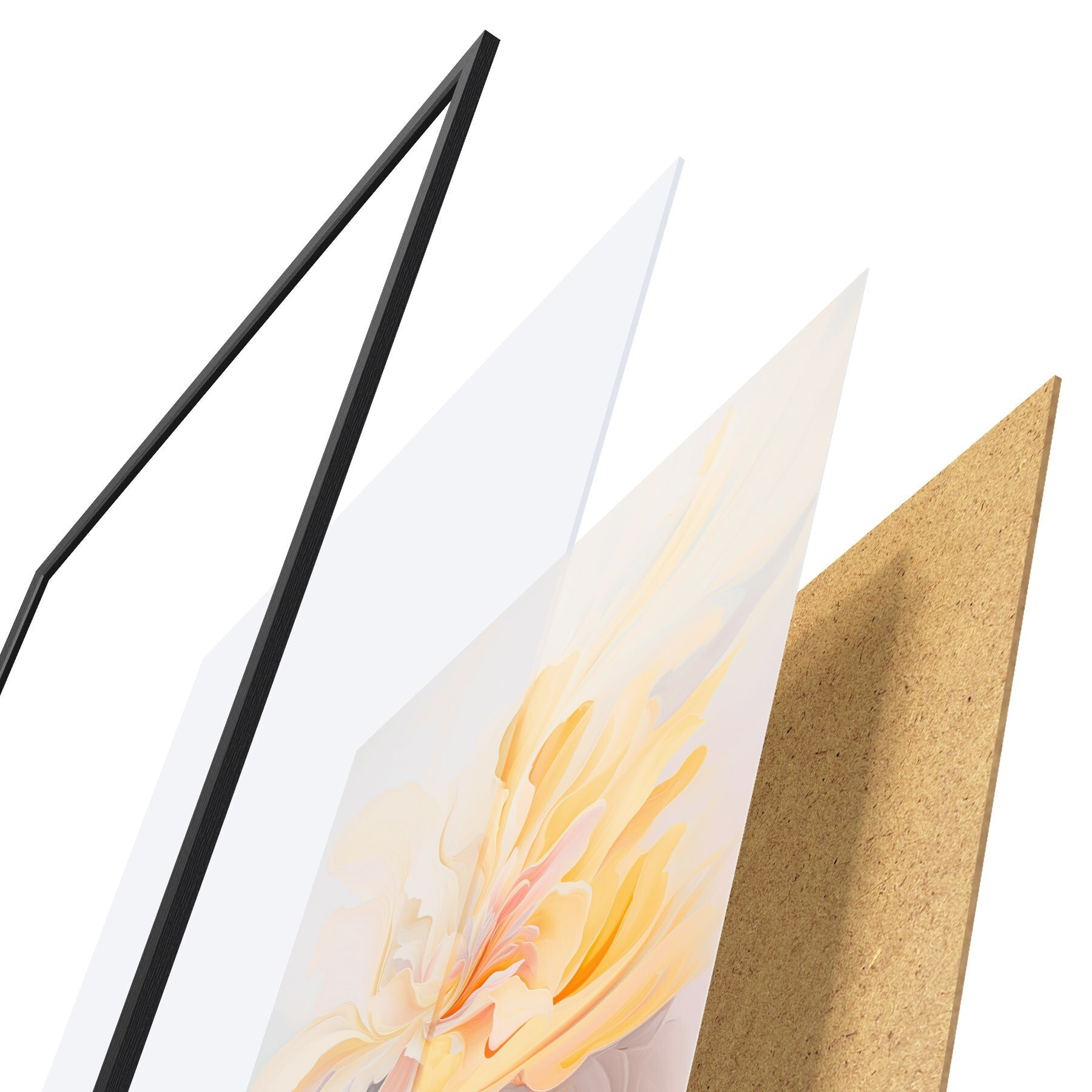 Постер складається з рами, оргскла, надрукованого зображення та підкладки з ДСП. Завдяки кріпленням на звороті плакат можна одразу ж повісити на стіну.