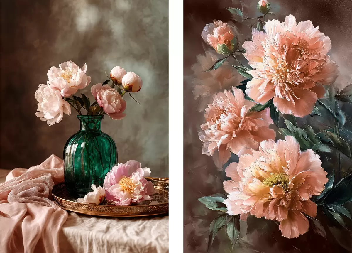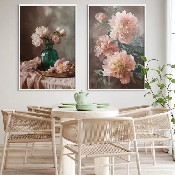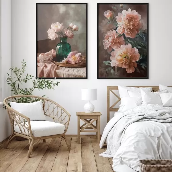 Постер на стіну Парна композиція з рожевими півоніями у вазі та на полотні Nr d00578
