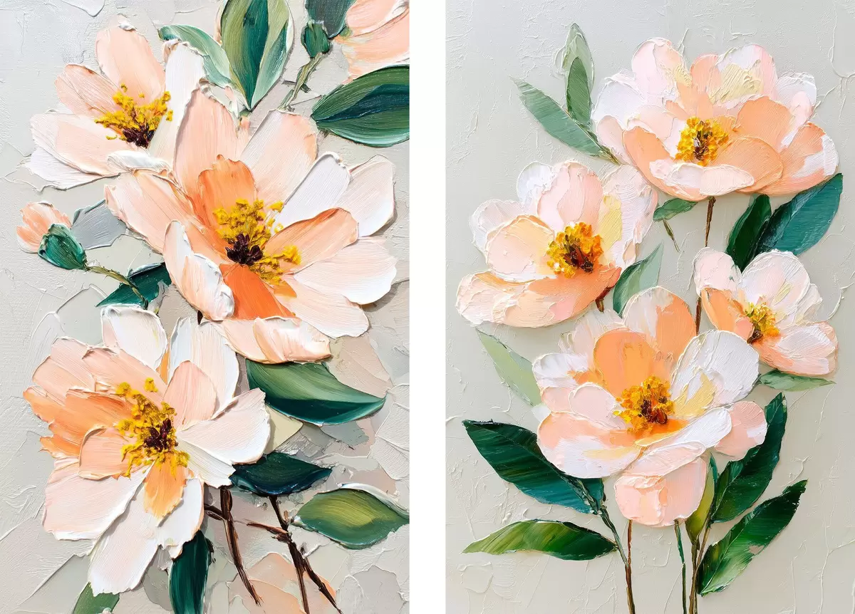 Постер на стіну Картина в стилі імпасто, що поєднує великий букет та окремі квіти Nr d00579