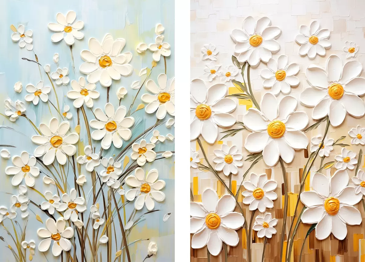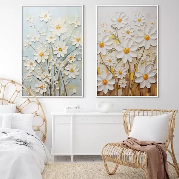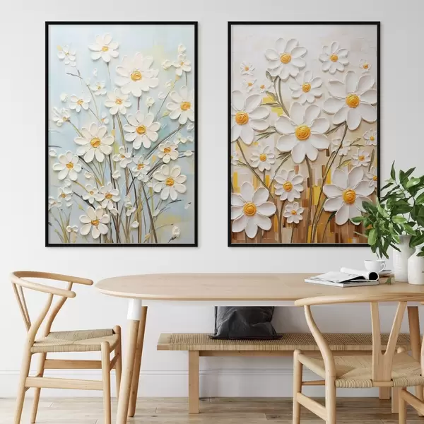 Постер на стіну Сонячні квіти: арт-дует з об'ємними ромашками та жовтими акцентами Nr d00580