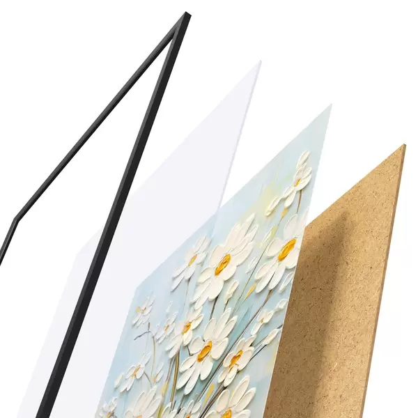 Постер складається з рами, оргскла, надрукованого зображення та підкладки з ДСП. Завдяки кріпленням на звороті плакат можна одразу ж повісити на стіну.