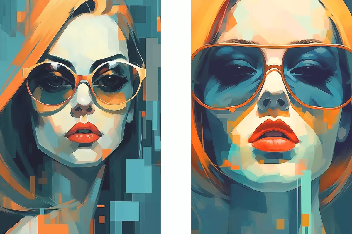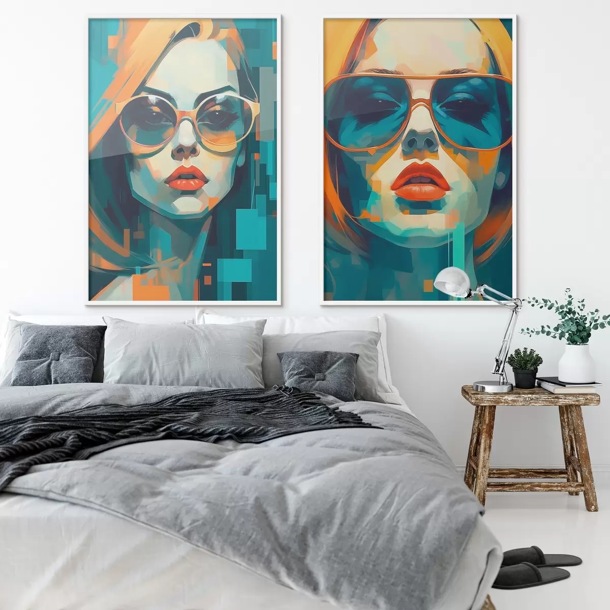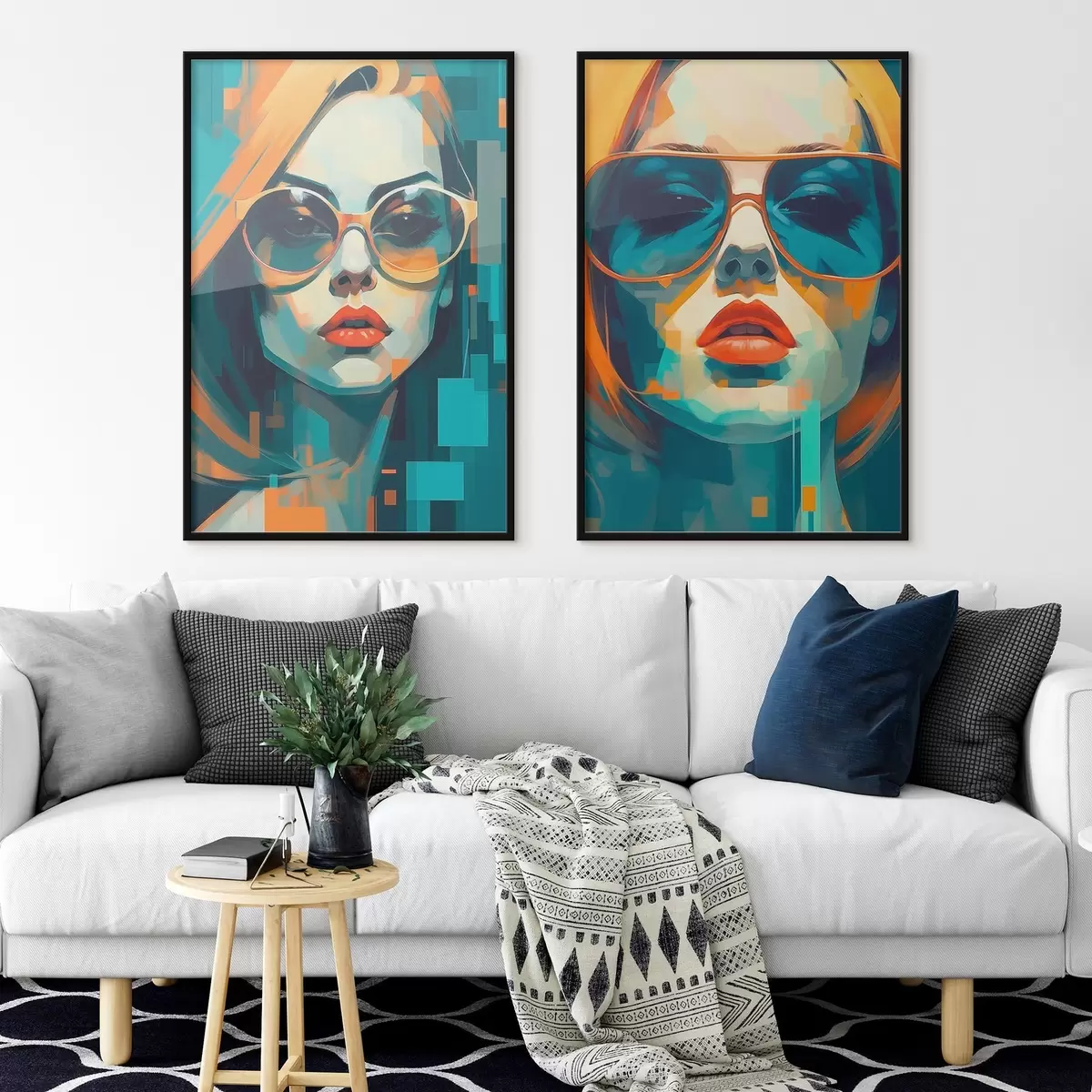 Постер на стіну Жіночі портрети в окулярах у стилі цифрової абстракції Nr d00587
