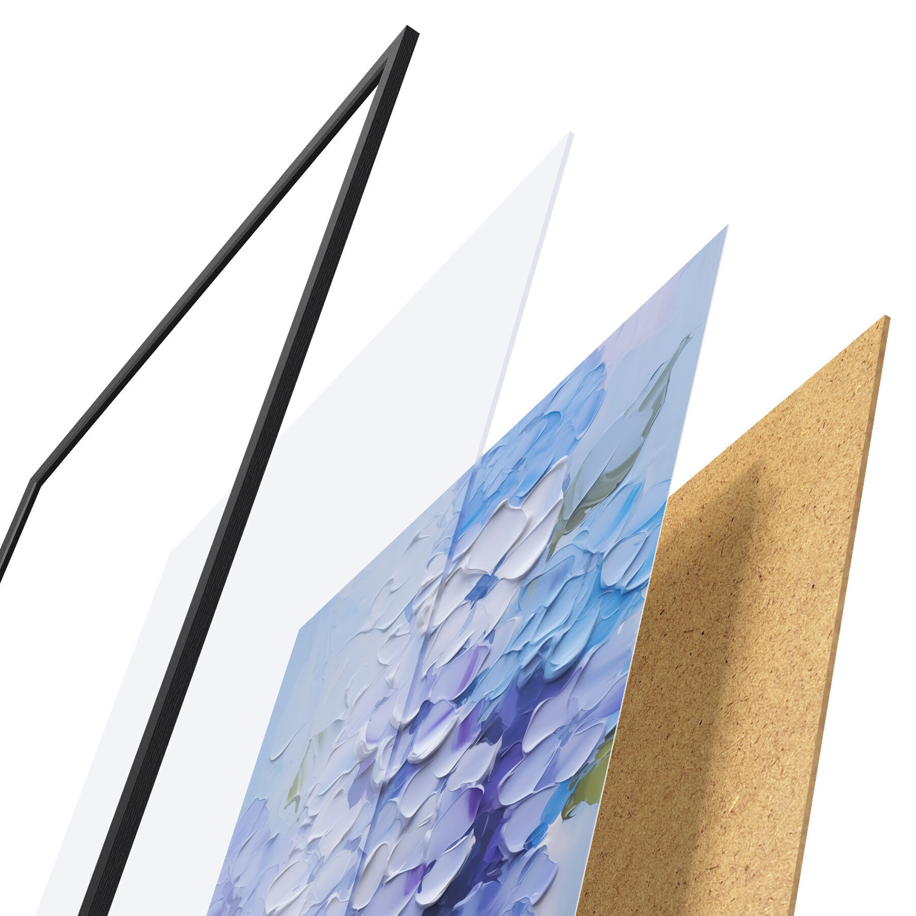 Постер складається з рами, оргскла, надрукованого зображення та підкладки з ДСП. Завдяки кріпленням на звороті плакат можна одразу ж повісити на стіну.