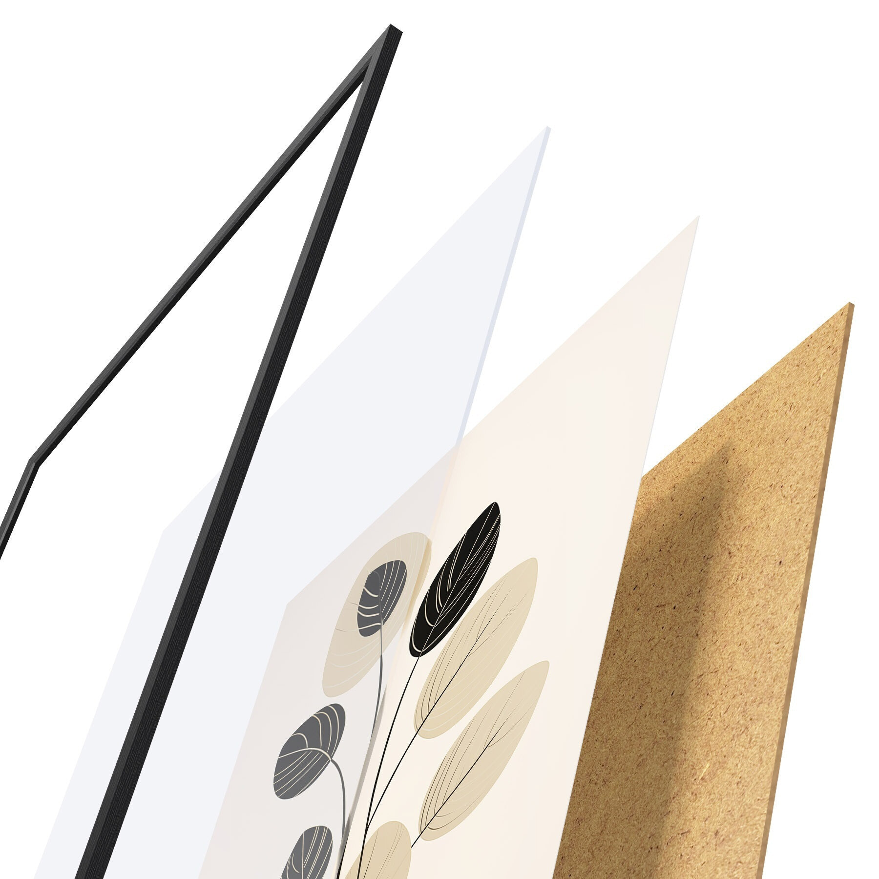 Постер складається з рами, оргскла, надрукованого зображення та підкладки з ДСП. Завдяки кріпленням на звороті плакат можна одразу ж повісити на стіну.