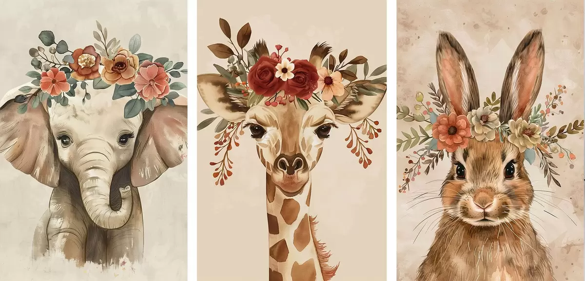 Постер на стіну Милі тварини в акварельному стилі Nr d00614