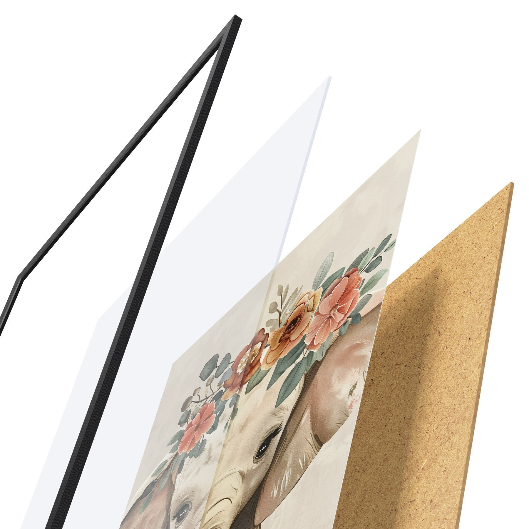 Постер складається з рами, оргскла, надрукованого зображення та підкладки з ДСП. Завдяки кріпленням на звороті плакат можна одразу ж повісити на стіну.