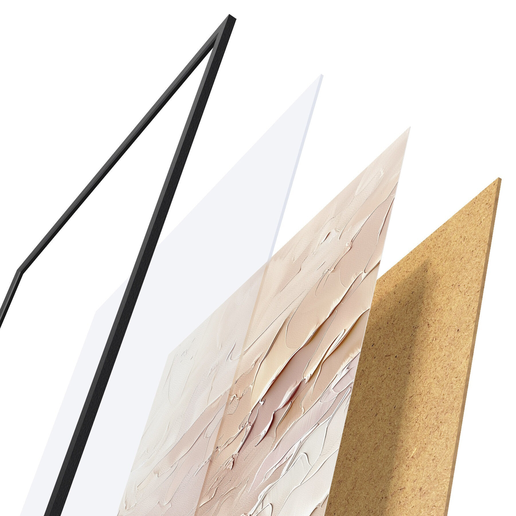 Постер складається з рами, оргскла, надрукованого зображення та підкладки з ДСП. Завдяки кріпленням на звороті плакат можна одразу ж повісити на стіну.