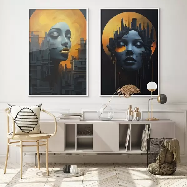 Постер на стіну Портрет дівчини на тлі абстрактного міста Nr d00618