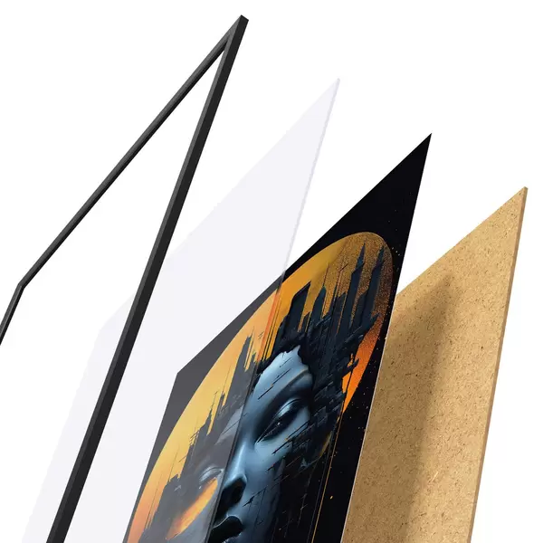 Постер складається з рами, оргскла, надрукованого зображення та підкладки з ДСП. Завдяки кріпленням на звороті плакат можна одразу ж повісити на стіну.