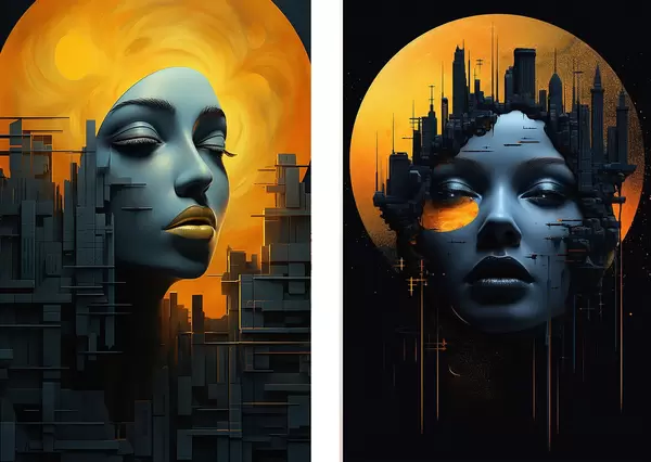Постер на стіну Портрет дівчини на тлі абстрактного міста Nr d00618