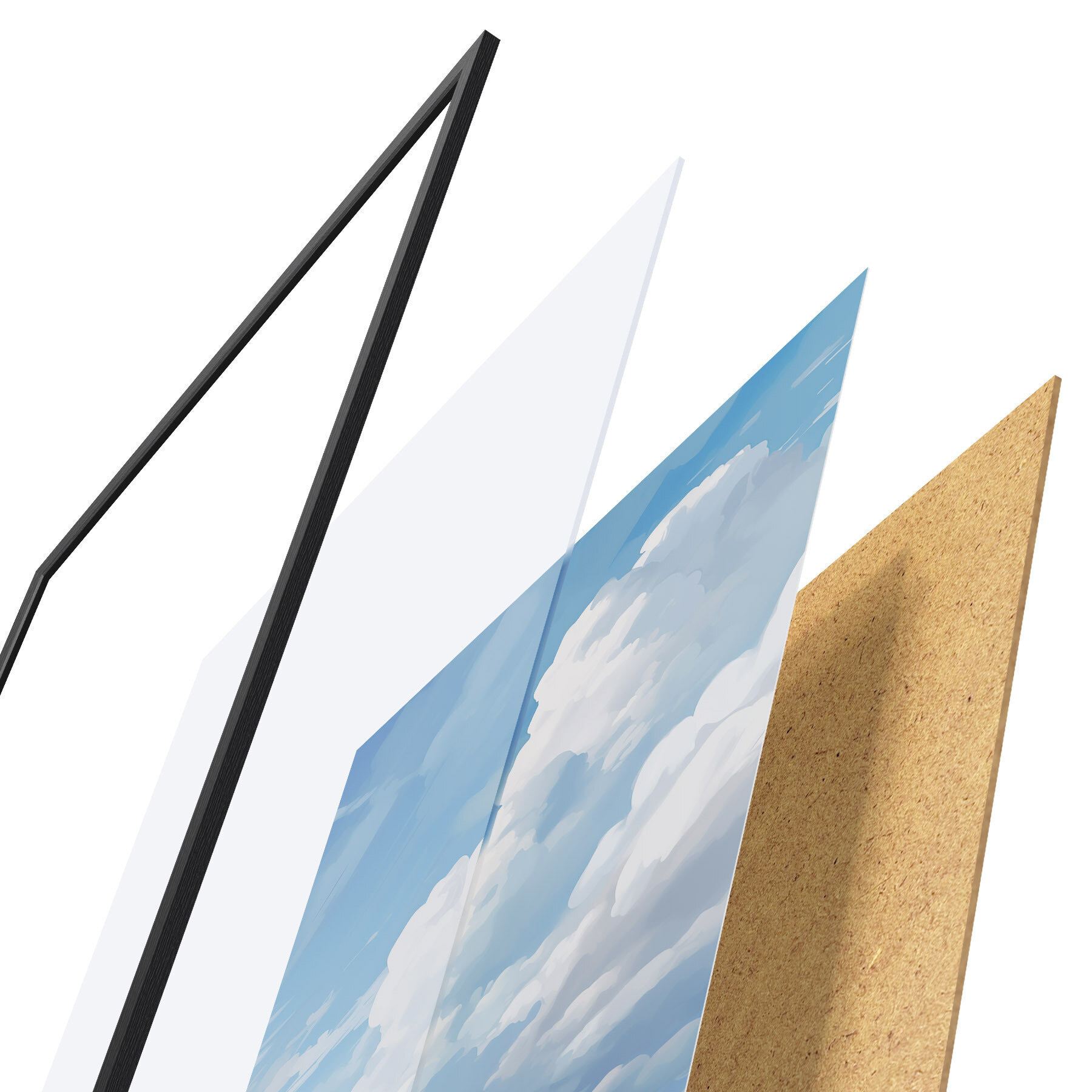 Постер складається з рами, оргскла, надрукованого зображення та підкладки з ДСП. Завдяки кріпленням на звороті плакат можна одразу ж повісити на стіну.