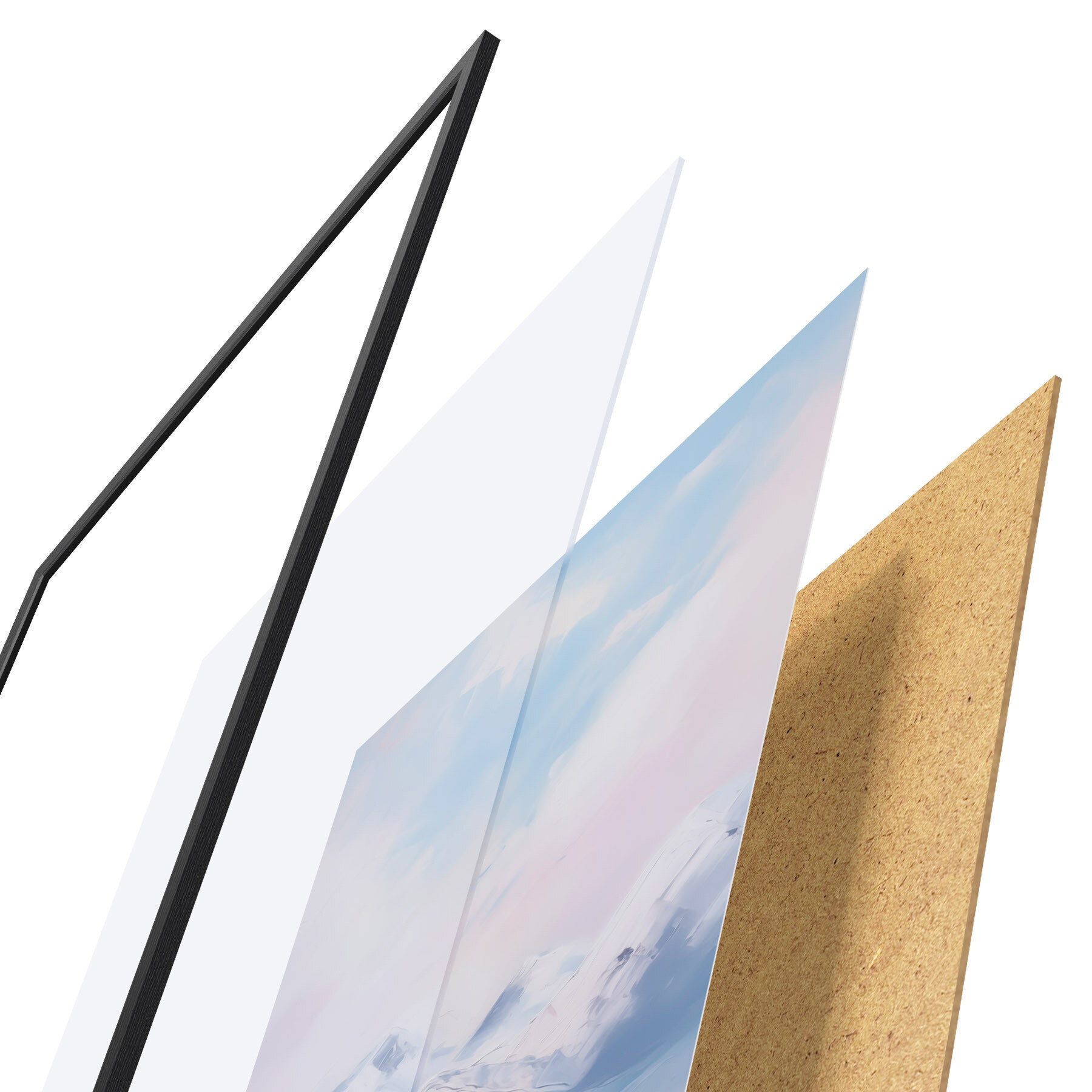 Постер складається з рами, оргскла, надрукованого зображення та підкладки з ДСП. Завдяки кріпленням на звороті плакат можна одразу ж повісити на стіну.