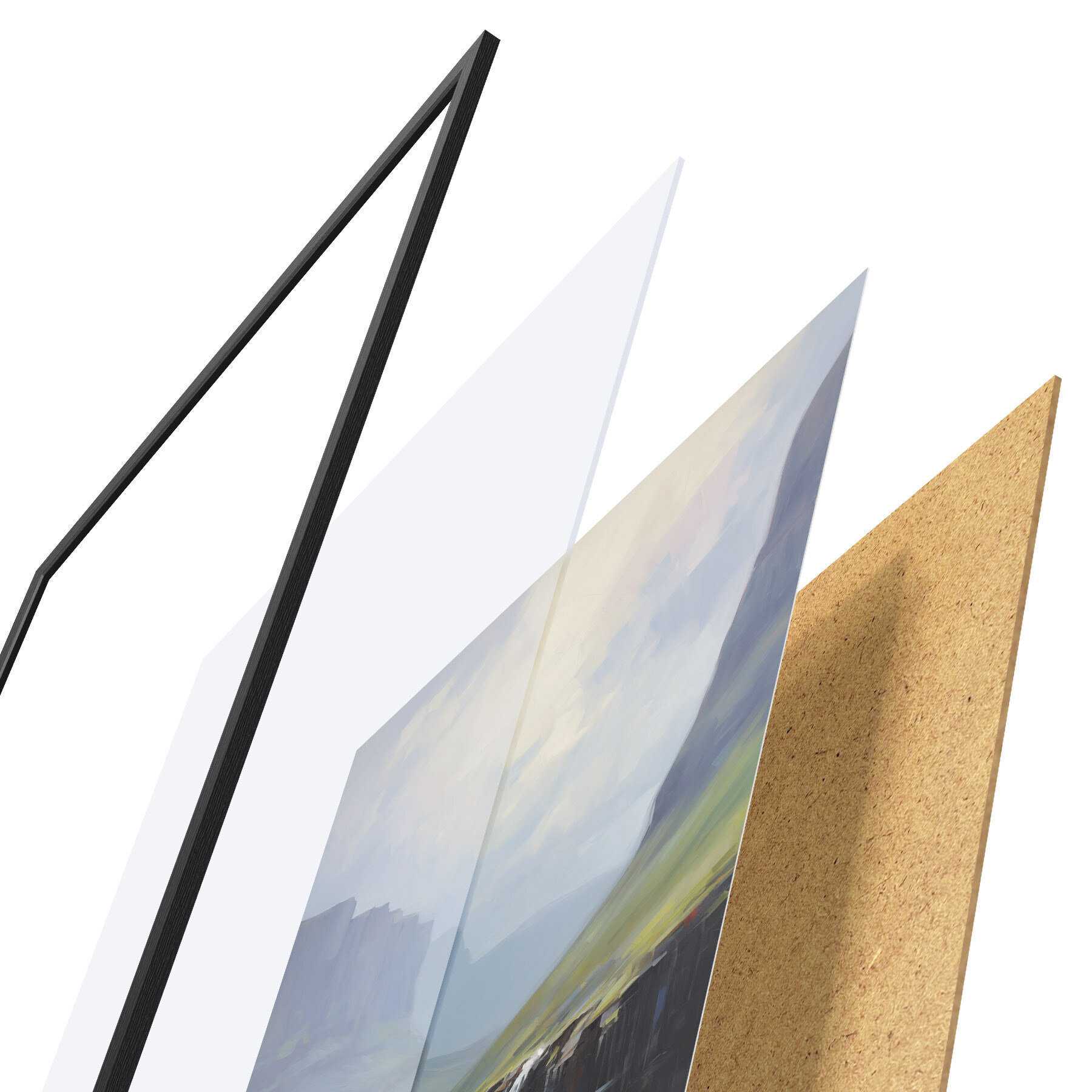 Постер складається з рами, оргскла, надрукованого зображення та підкладки з ДСП. Завдяки кріпленням на звороті плакат можна одразу ж повісити на стіну.