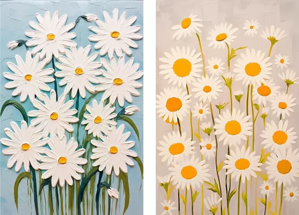Постер на стіну Весняна свіжість: диптих з об'ємними ромашками в стилі імпасто Nr d00633