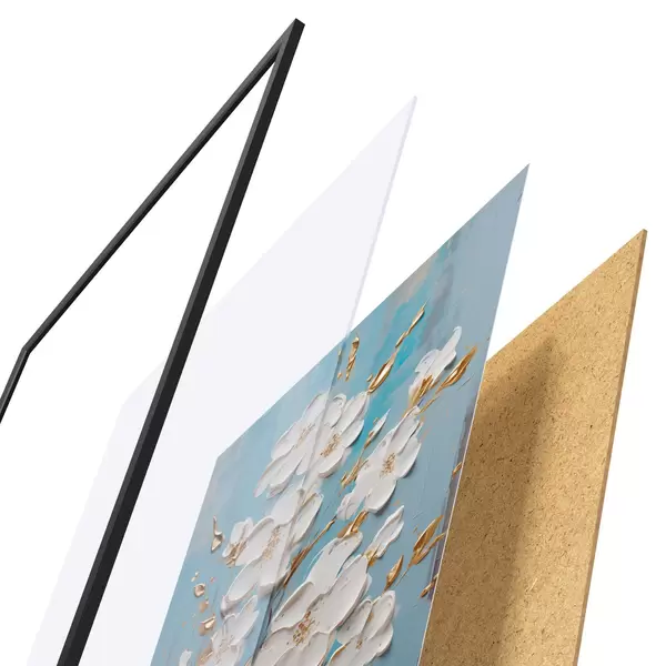 Постер складається з рами, оргскла, надрукованого зображення та підкладки з ДСП. Завдяки кріпленням на звороті плакат можна одразу ж повісити на стіну.
