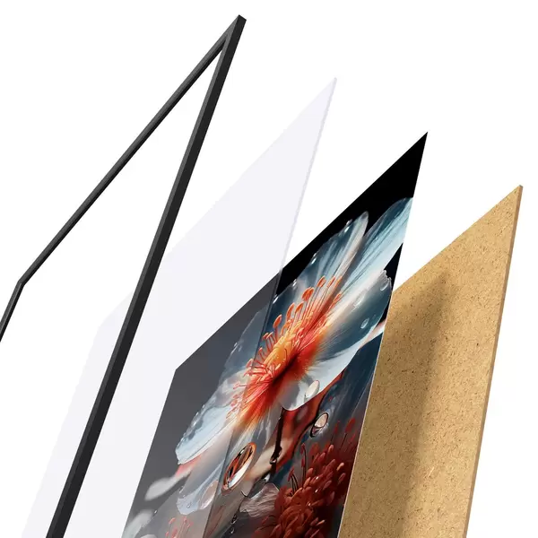 Постер складається з рами, оргскла, надрукованого зображення та підкладки з ДСП. Завдяки кріпленням на звороті плакат можна одразу ж повісити на стіну.