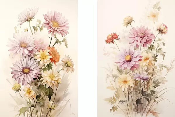 Постер на стіну Букет різнокольорових квітів, м'який акварельний стиль, на світлому тлі, ботанічна ілюстрація Nr d00649