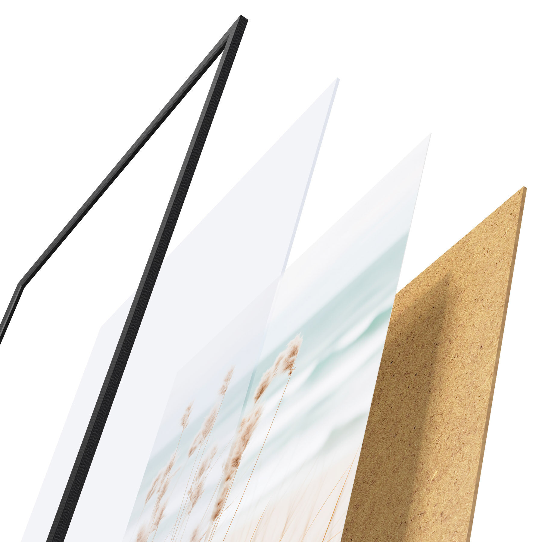 Постер складається з рами, оргскла, надрукованого зображення та підкладки з ДСП. Завдяки кріпленням на звороті плакат можна одразу ж повісити на стіну.