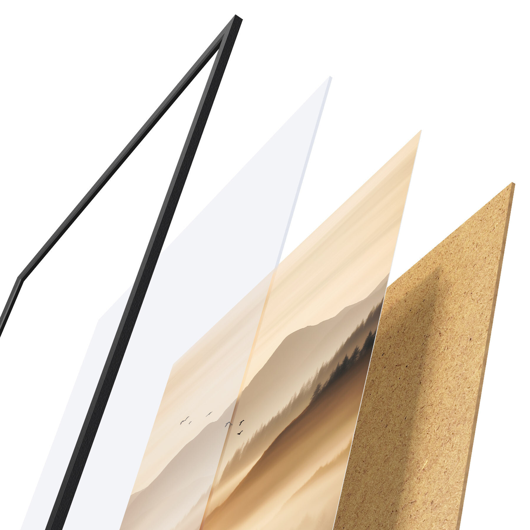 Постер складається з рами, оргскла, надрукованого зображення та підкладки з ДСП. Завдяки кріпленням на звороті плакат можна одразу ж повісити на стіну.