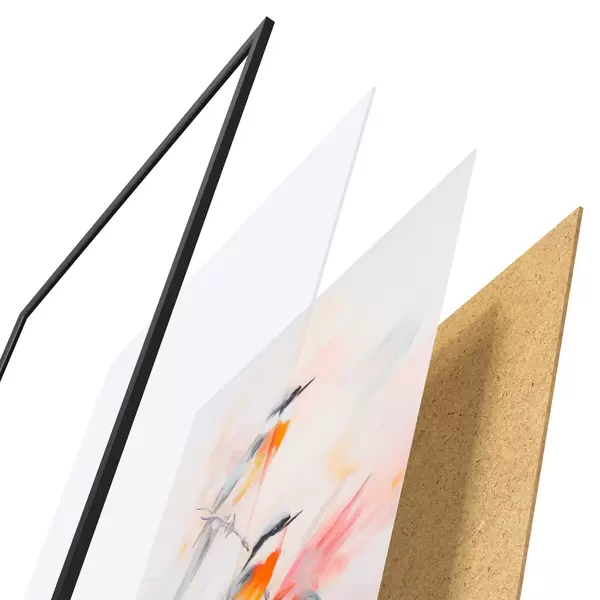 Постер складається з рами, оргскла, надрукованого зображення та підкладки з ДСП. Завдяки кріпленням на звороті плакат можна одразу ж повісити на стіну.