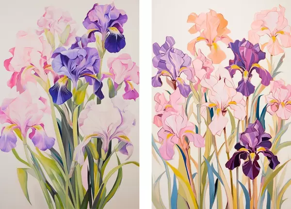 Постер на стіну Іриси в пастельних відтінках на світлому фоні Nr d00660