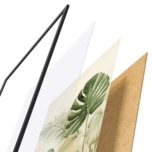 Постер складається з рами, оргскла, надрукованого зображення та підкладки з ДСП. Завдяки кріпленням на звороті плакат можна одразу ж повісити на стіну.