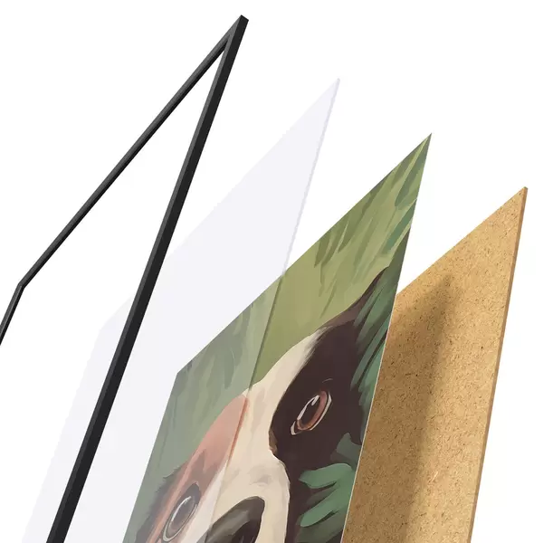 Постер складається з рами, оргскла, надрукованого зображення та підкладки з ДСП. Завдяки кріпленням на звороті плакат можна одразу ж повісити на стіну.