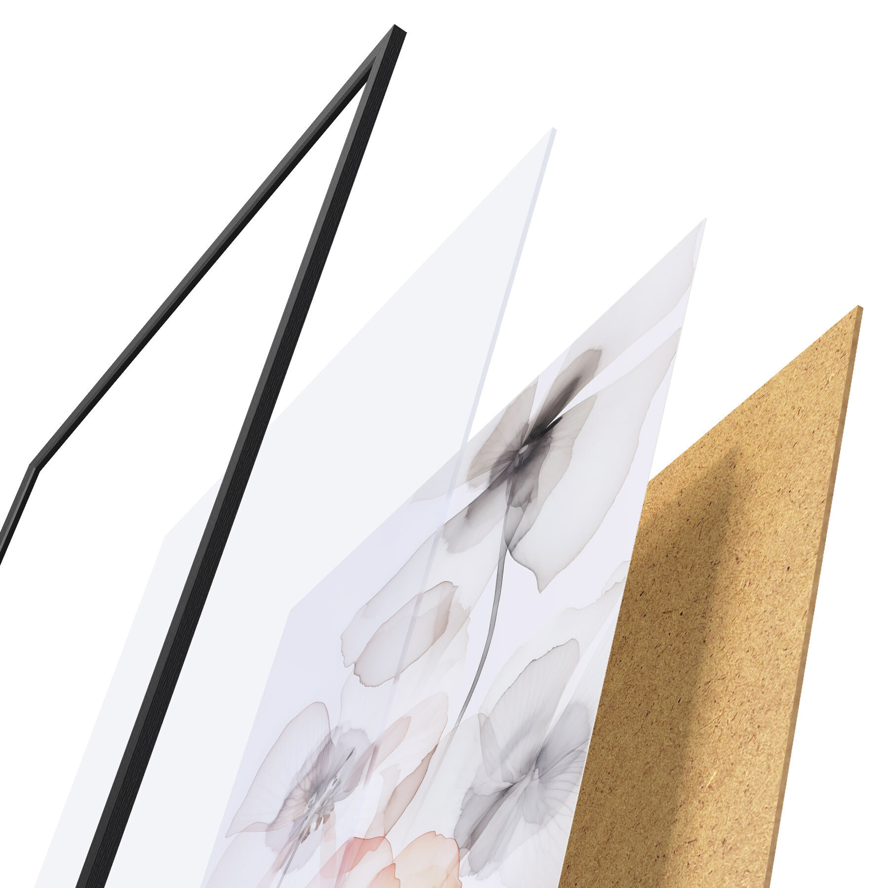 Постер складається з рами, оргскла, надрукованого зображення та підкладки з ДСП. Завдяки кріпленням на звороті плакат можна одразу ж повісити на стіну.